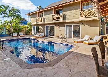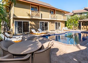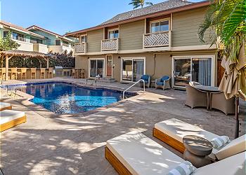 At the heart of the property, guests can unwind at the shared swimming pool, ideal for cooling off, socializing, or simply soaking up the Hawaiian sunshine. The intimate size of the complex provides a laid-back, uncrowded feel while still offering great shared amenities, like outdoor shower, tiki bar, BBQ grill and comfortable pool loungers.