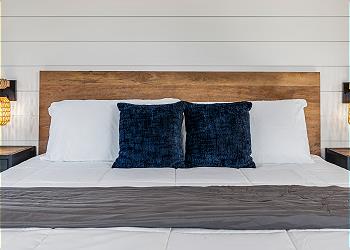 Each thoughtfully designed unit features a light and bright modern coastal décor, creating a luxurious, relaxed atmosphere inspired by the sea. Enjoy the cool comfort of split A/C and ceiling fans in every unit, as well as all of the comforts of home like flat screen TVs in living and bed rooms, high speed WiFi and upgraded appliances.