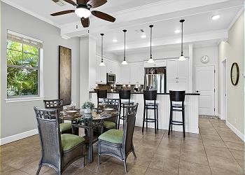 The living and dining areas have been freshly painted and feature new luxury vinyl flooring, providing plenty of space to gather for meals or enjoy a movie night. The bright white galley-style kitchen includes new appliances and everything needed to prepare island-inspired meals. A thoughtful layout provides comfortable spaces to spend time together or relax independently.