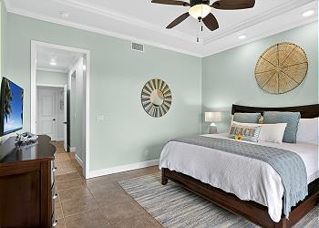 Primary bedroom on the first floor with soothing color pallet. [15]