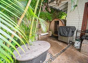 Outdoor shower, steam bath, ice bath, and bathroom for the ultimate tropical wellness experience