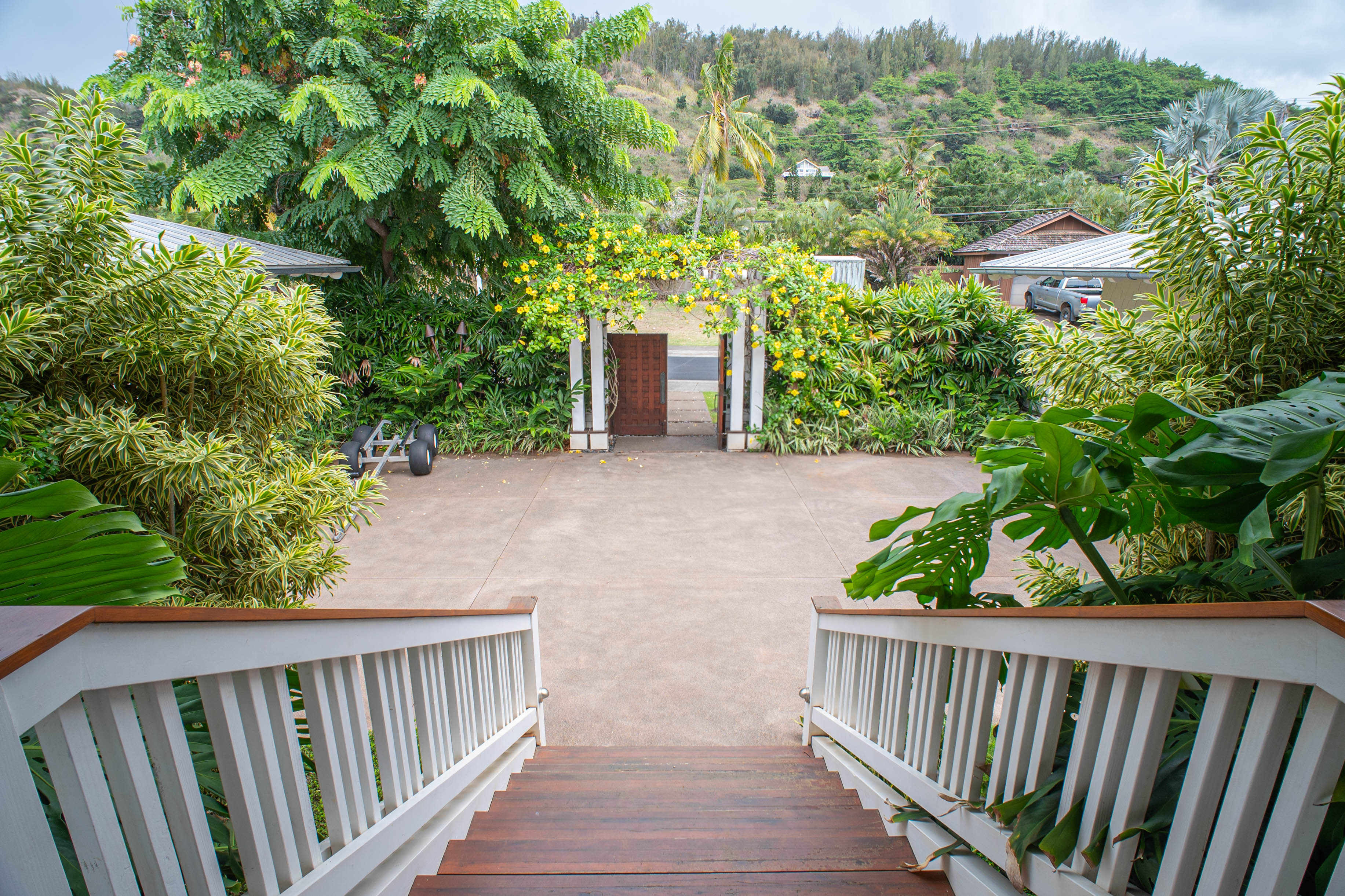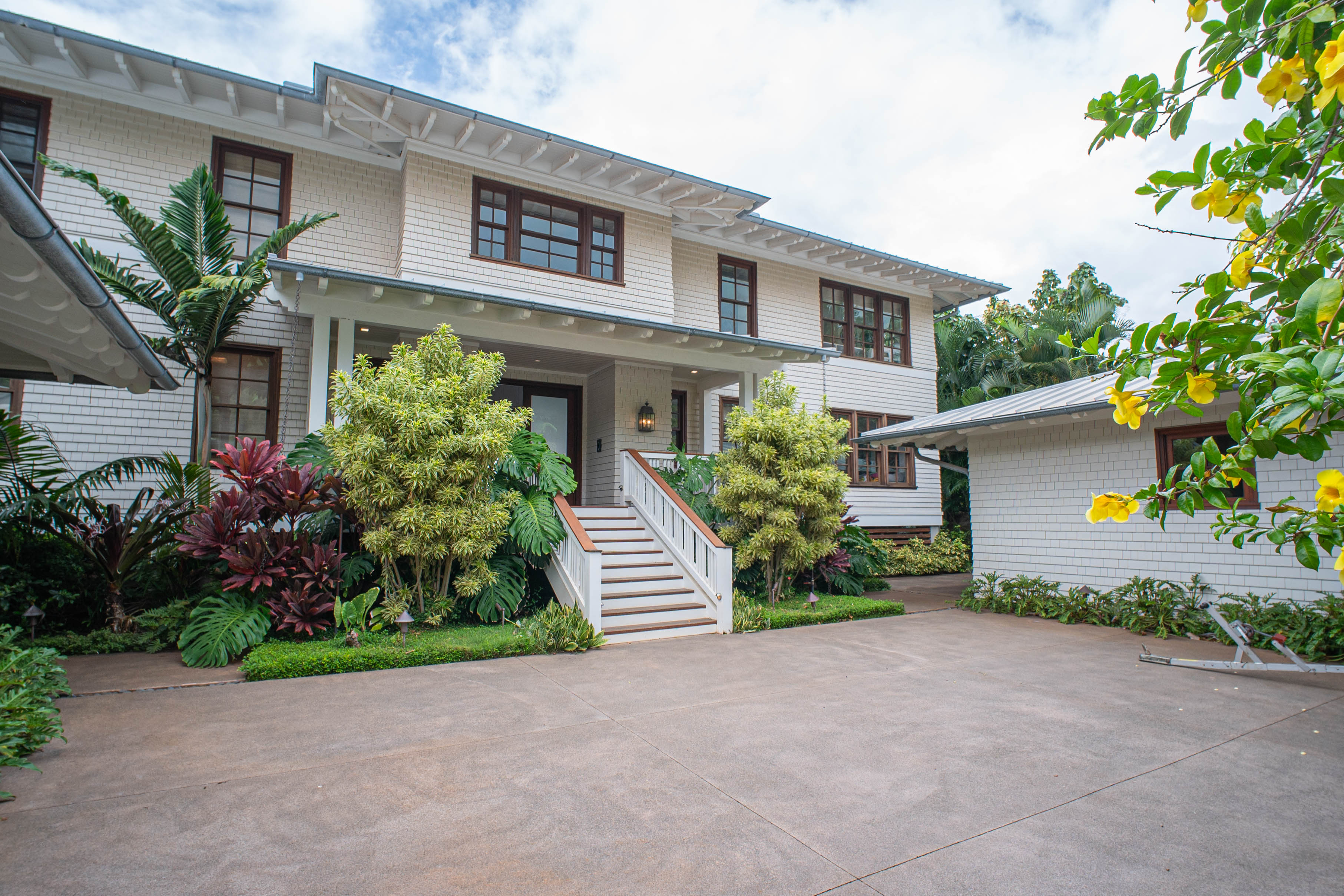 Lush, exotic landscaping and world-class surf steps away