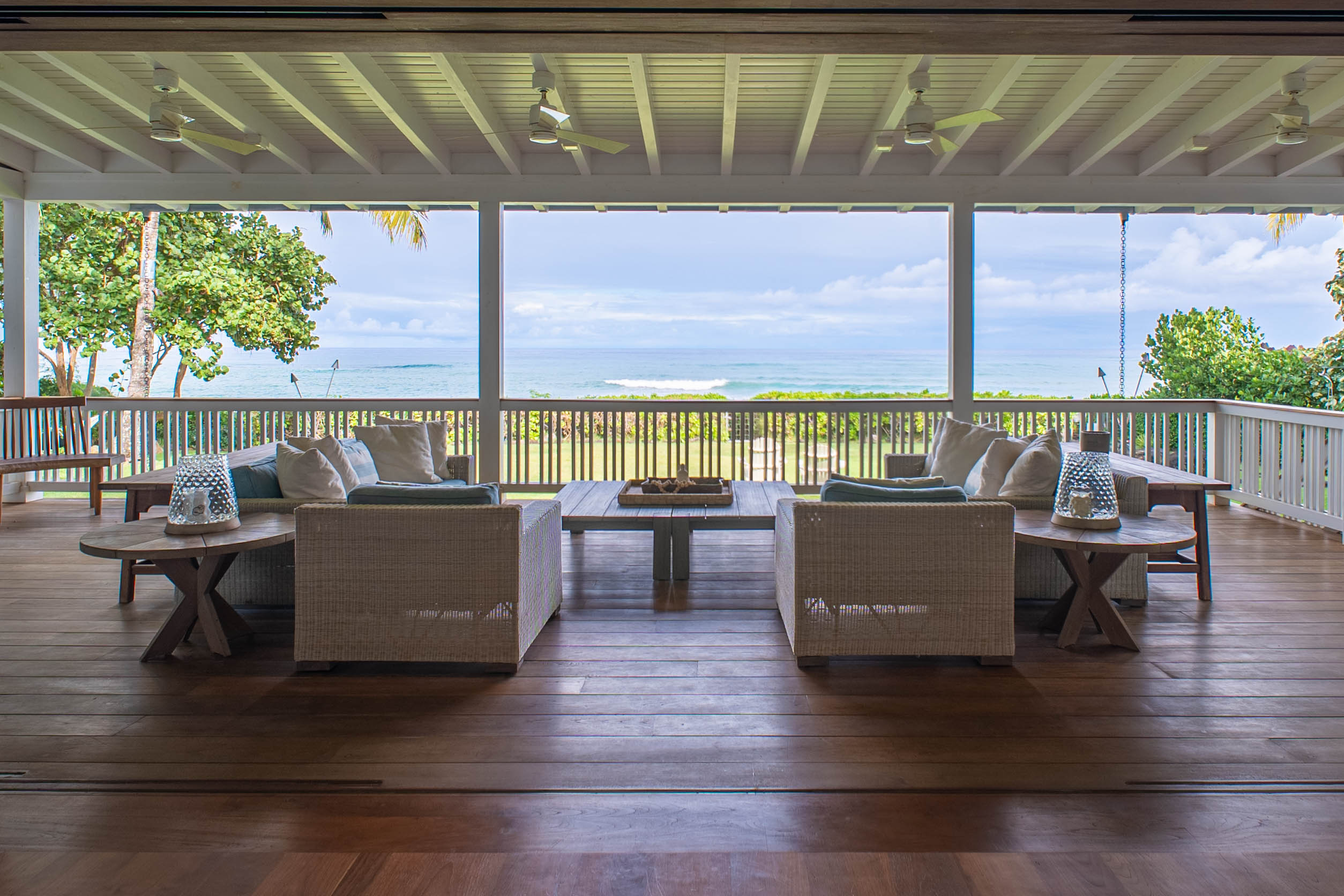 1,000+ sq ft covered lanai flowing onto white sand beaches — ideal for entertaining or relaxing in seclusion