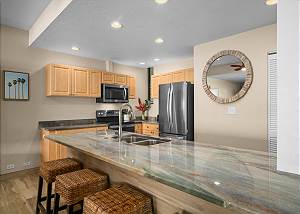 The kitchen has everything you need to create wonderful meals from the comfort of your condo. With top-of-the line appliances, you'll love the ability to cook and hang out at the same time. There are indoor and outdoor dining options and a gas grill for all your BBQ needs.